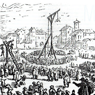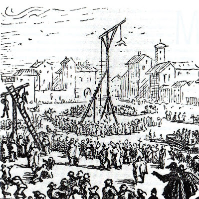 A julgar por relatos e gravuras, os enforcamentos públicos (por exemplo em 1600, 1700, 1800 – na Europa, América e outros lugares) deviam ser eventos incrivelmente festivos: famílias inteiras iam às praças, aproveitando para comer, comprar/trocar, se divertir e “fazer um social”. Imagino as crianças (e não só elas) ávidas pelo espetáculo, os olhinhos brilhando em ansiosa antecipação, os comentários (indignados, raivosos, zombeteiros, compadecidos), ora sussurrados em segredo, ora berrados aos gritos. Enfim, uma festa. Considerando a falta de estádios de futebol, arenas de gladiadores e afins, uma excelente opção. A velha curiosidade humana pela morte, a felicidade de ser o outro e não nós, nossa morbidez disfarçada em senso de justiça, o fascínio pela desgraça alheia (assim como, hoje, as pessoas diminuem a velocidade de seus carros ao passar por cenas de acidentes e, chocadas/estarrecidas/maravilhadas, se horrorizam com o sangue e os corpos despedaçados).